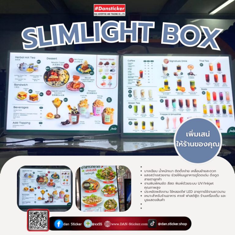 รับผลิต ออกแบบ พิมพ์ ป้ายไฟ Slim Light Box (สลิมไลท์บ็อกซ์)ป้ายไฟทุกรูปแบบ