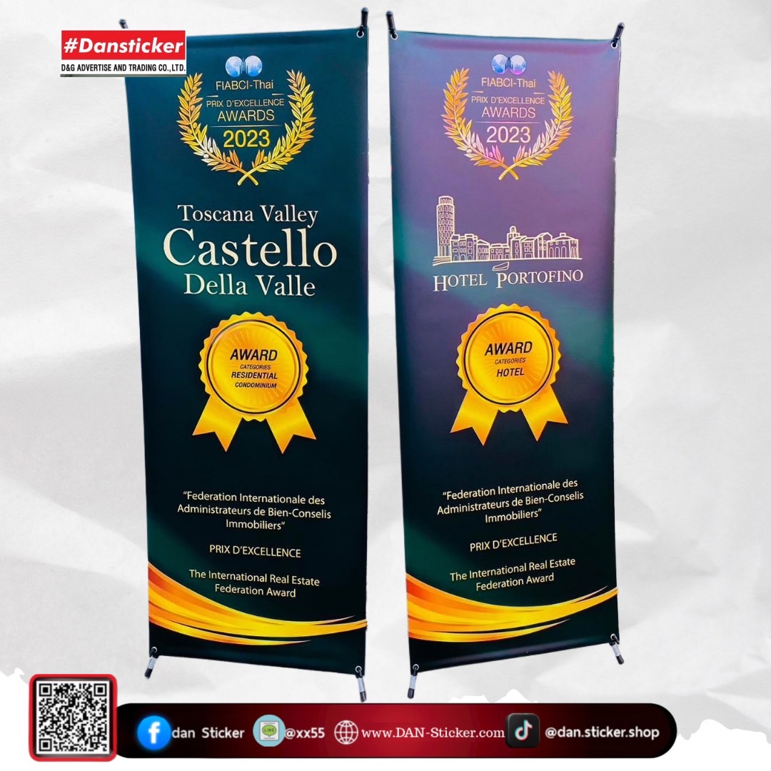 รับออกแบบ+ผลิต ป้ายเอ็กสแตน X-Stand ป้ายไวนิลออกอีเว้นท์ ขาตั้งป้ายรูปตัว X
