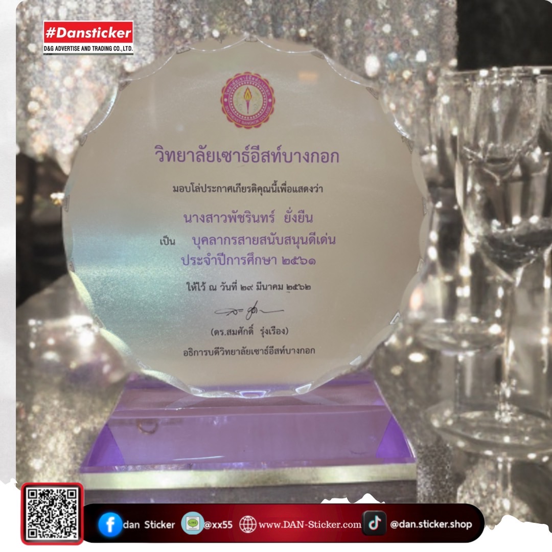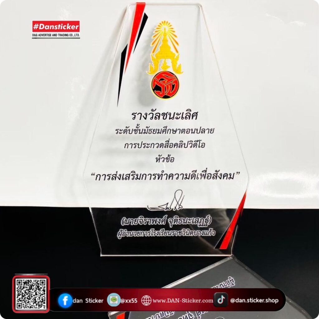 ผลิต และพิมพ์โล่รางวัลหลากหลายรูปแบบ ไม่ว่าจะเป็นงานประกาศเกียรติคุณ