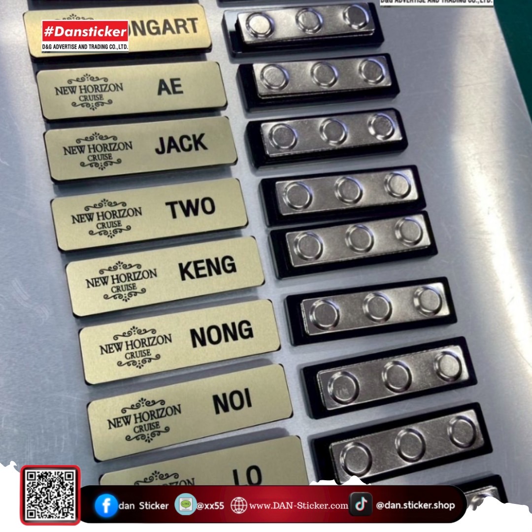 บริการผลิต เนมเพลตติดแม่เหล็ก สำหรับพนักงานทุกองค์กร ทั้งบริษัท โรงแรม ร้านอาหาร ร้านกาแฟ รวมถึงงานอีเวนต์ต่าง ๆ จุดเด่นคือใช้งานง่าย ไม่ต้องกลัด ไม่ทำให้เสื้อผ้าเป็นรู และดูเป็นมืออาชีพ