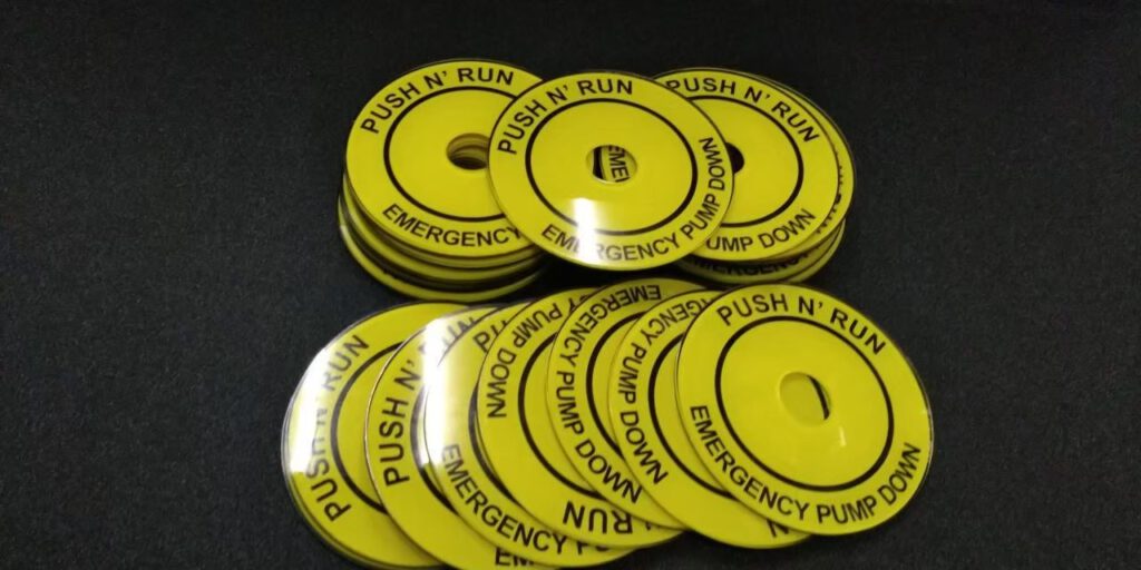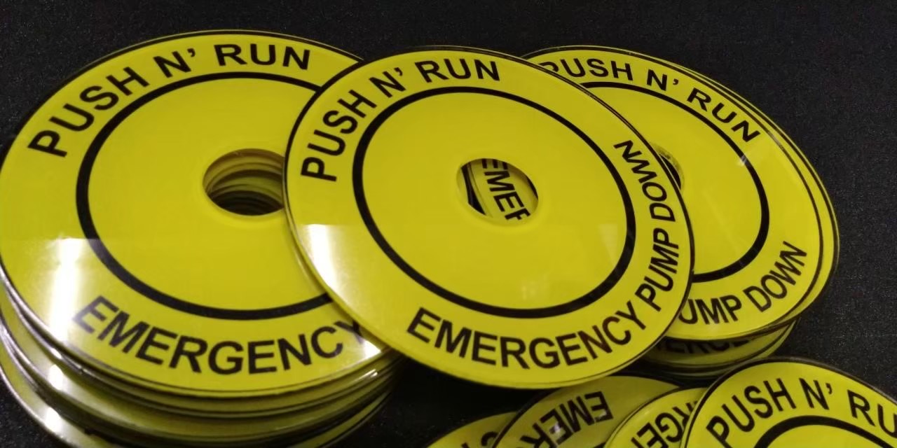 แผ่นป้ายสำหรับปุ่มหยุดฉุกเฉิน (Emergency Stop Sign Plate)