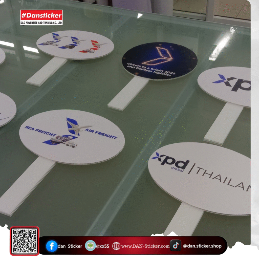 ป้ายพัดสำหรับถือ (Handheld Fan Sign) เป็นสื่อโปรโมตและอุปกรณ์เชียร์ยอดนิยม ใช้ถือในงานอีเวนต์ คอนเสิร์ต กีฬา กิจกรรมเปิดตัวสินค้า หรือใช้เป็นของชำร่วยประชาสัมพันธ์ เหมาะสำหรับการสร้างบรรยากาศและดึงดูดความสนใจของผู้คน